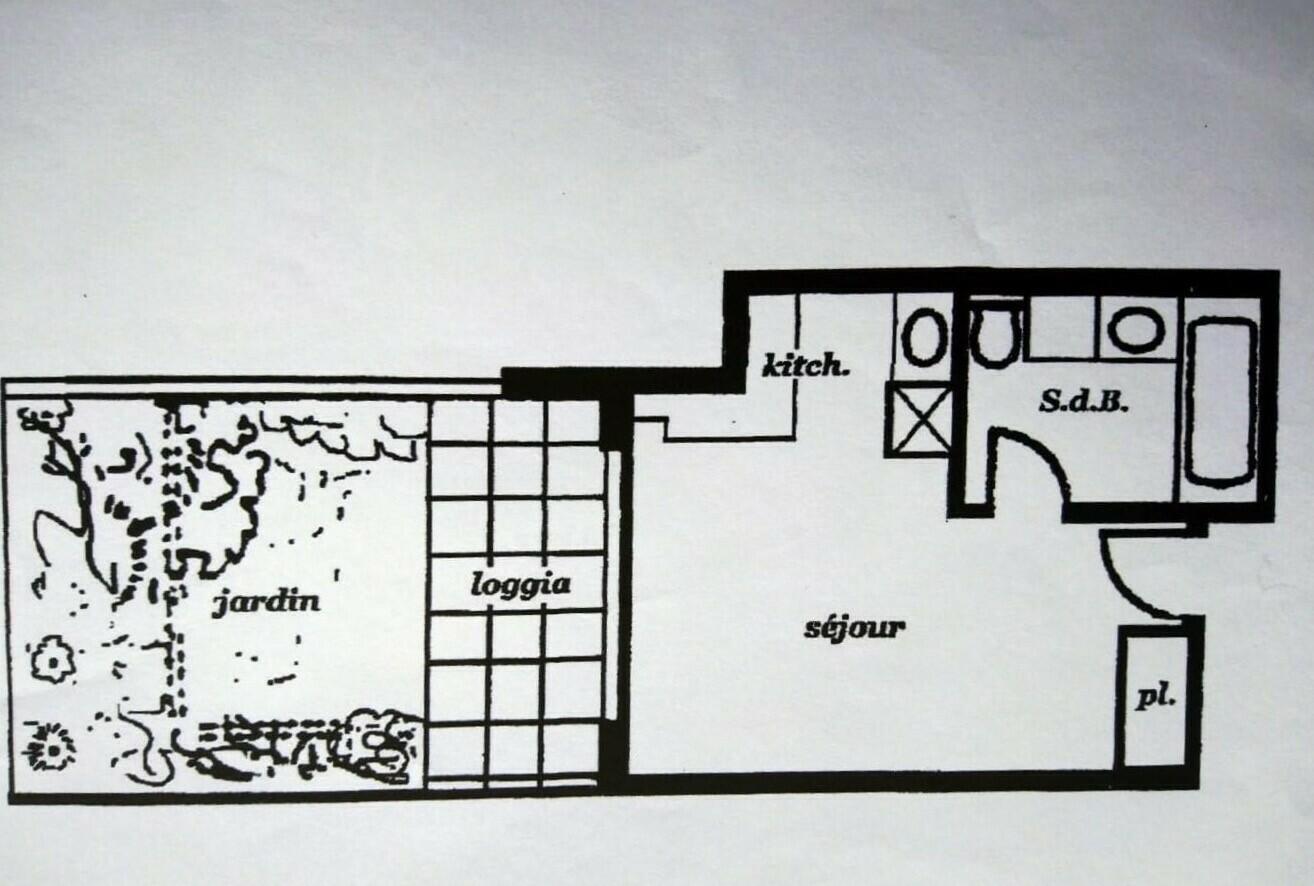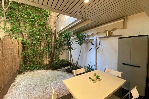 Studio entièrement rénové et meublé, calme, composé d'une entrée donnant sur pièce principale avec extérieur de 17 m², cuisine ouverte entièrement équipée, rangements, grande salle de bains avec douche et baignoire.