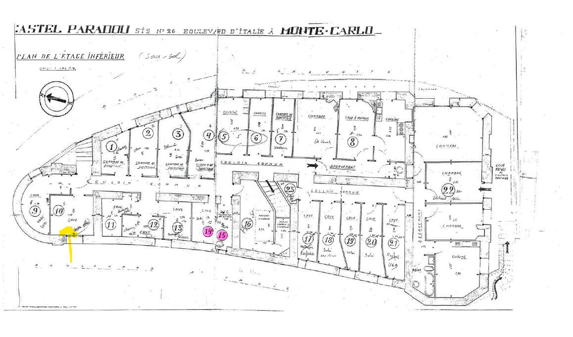 La cave matérialisée sur les plans ci-dessous est d’une superficie d’environ 8m². Elle bénéficie d’un éclairage naturel par une petite fenêtre en hauteur.